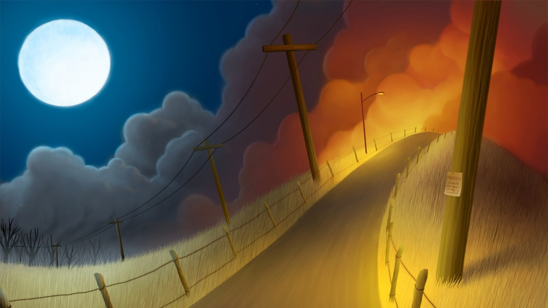 日落房子树光桥下的唯美约会场景绘画艺术电脑壁纸免费下载