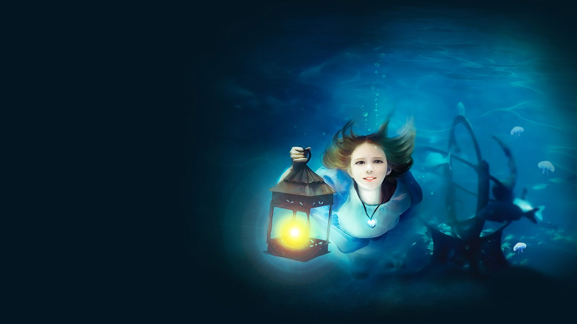 女孩花瓣路灯交织 唯美心情意境电脑壁纸免费下载