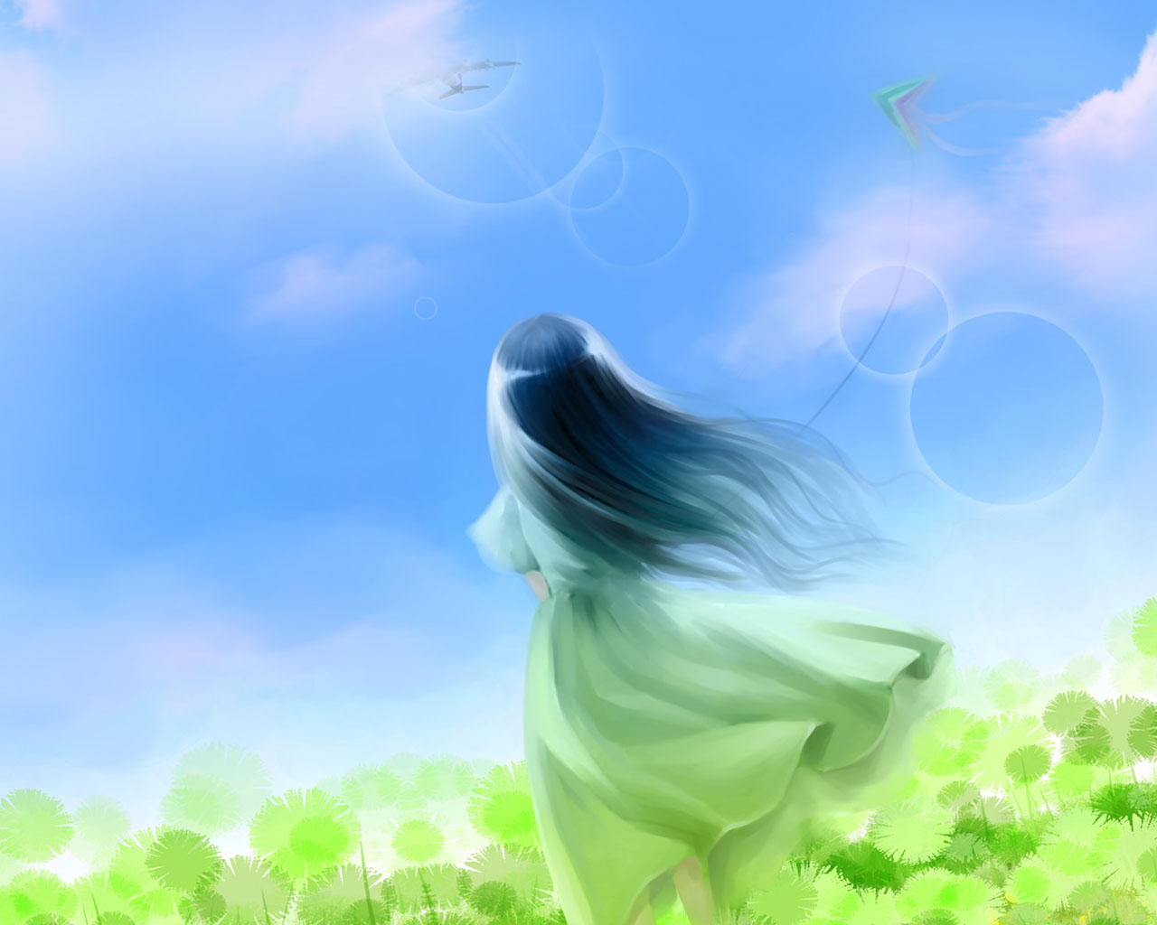 女孩丝带海山期待主题唯美意境免费电脑壁纸下载