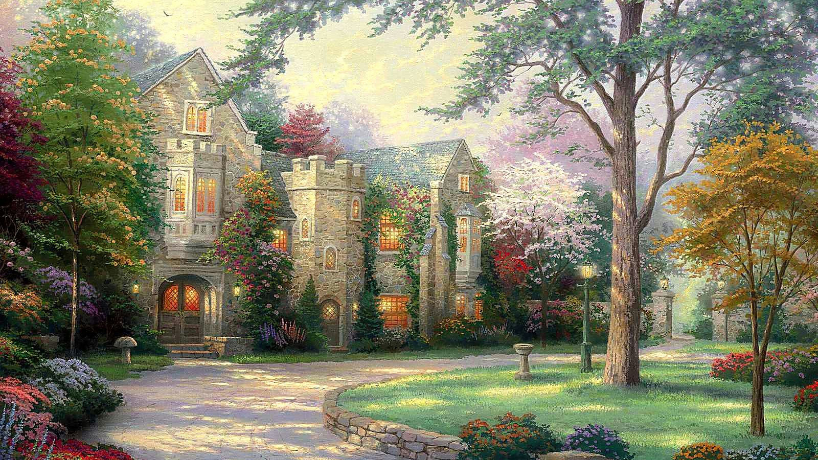 夜晚树灯花星星唯美免费电脑壁纸下载