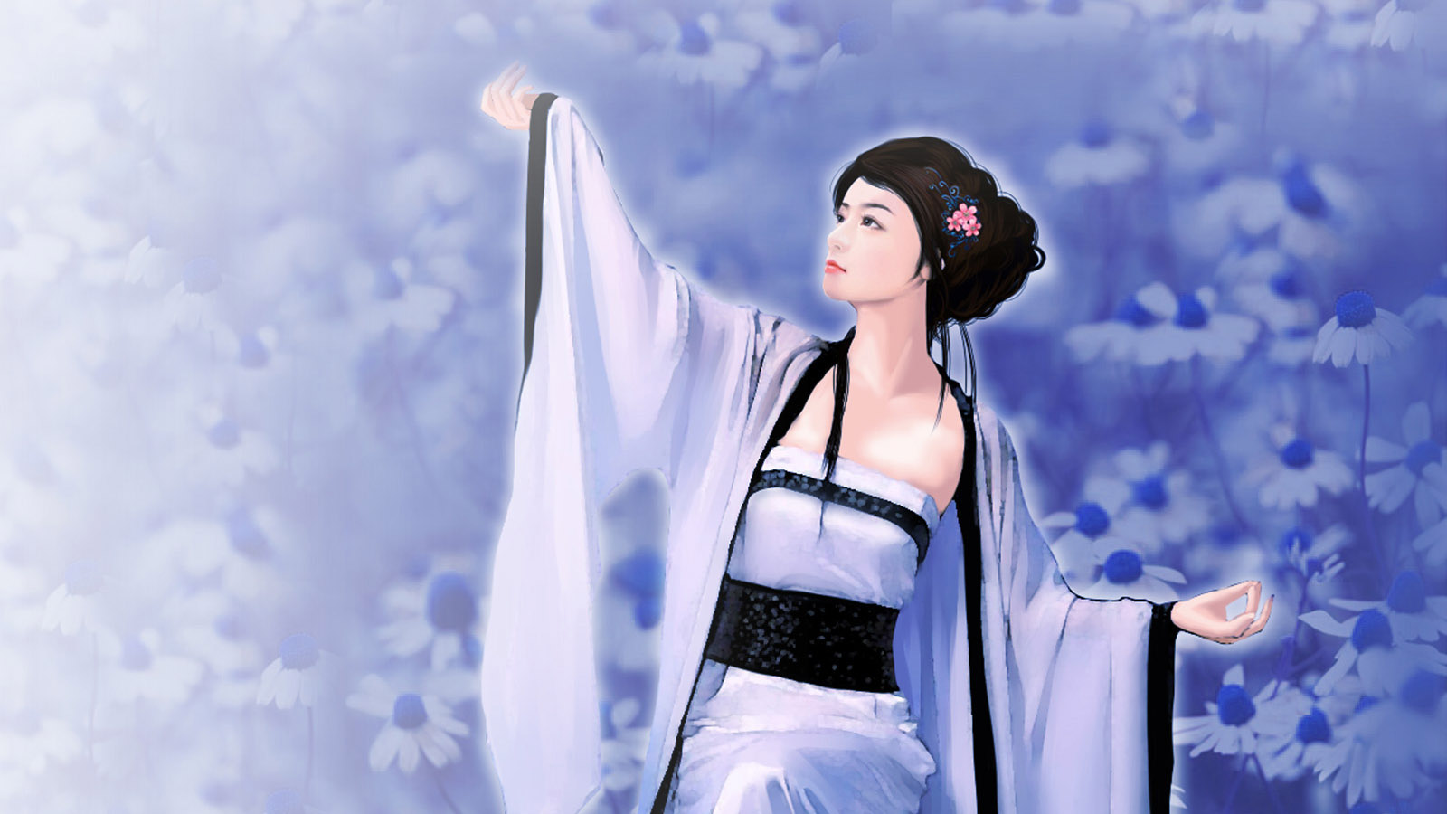 手绘风景女孩唯美免费电脑桌面壁纸下载
