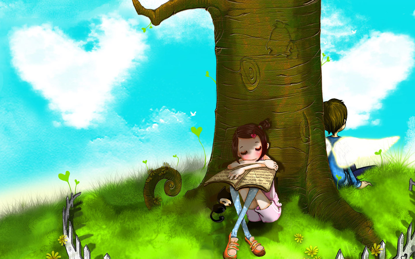 可爱女孩与猫唯美手掌拍手电脑壁纸免费下载