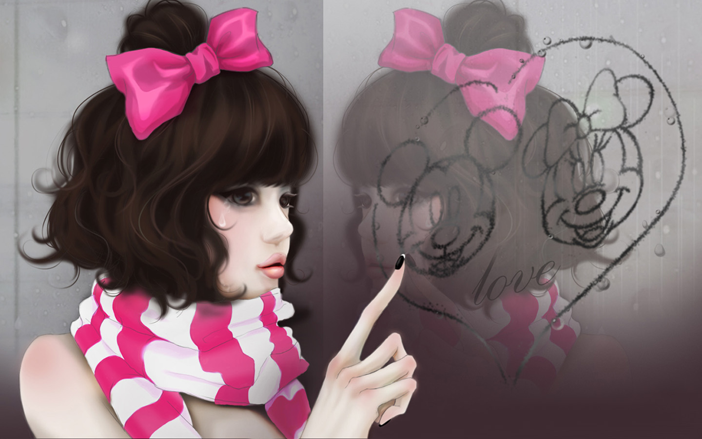 手绘关睢美女唯美免费电脑壁纸高清下载