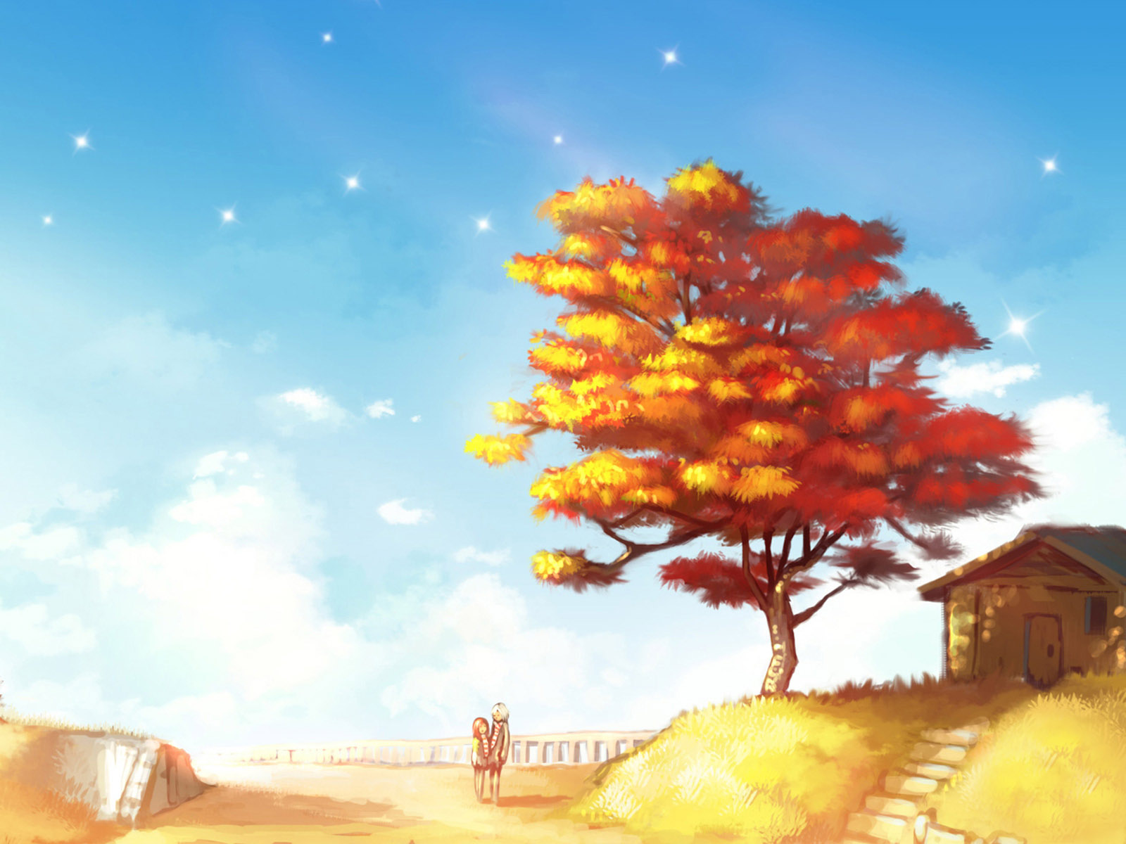 灯塔房子水阳光绘画唯美风景免费电脑壁纸下载