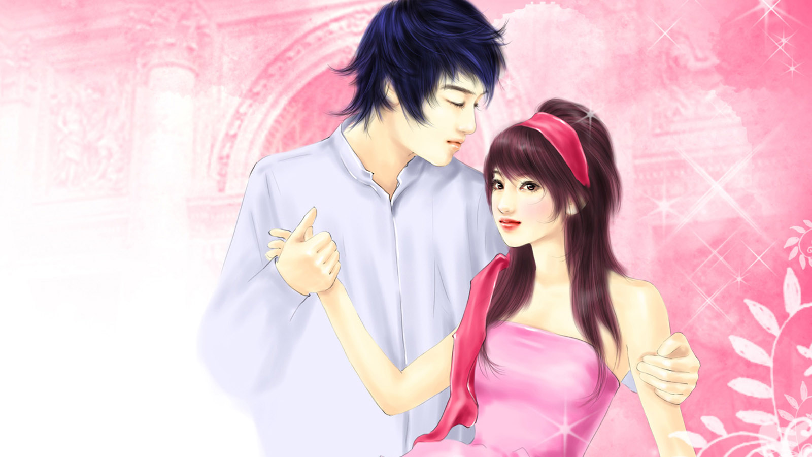 粉色长发婚纱情侣唯美免费电脑壁纸下载