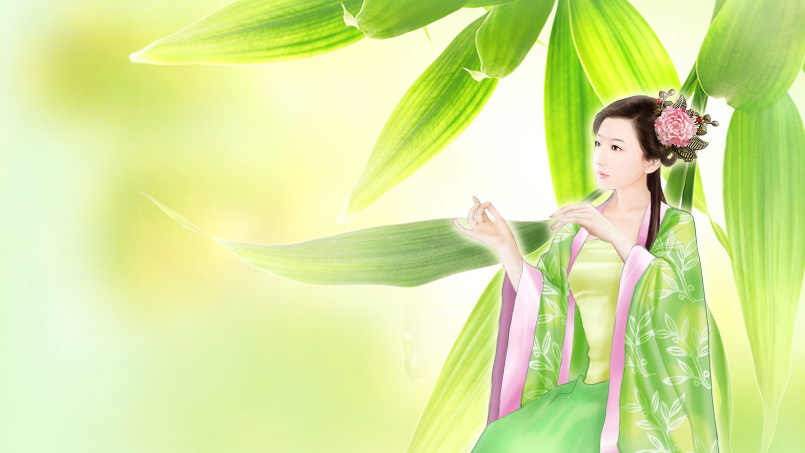 女孩礼服书湖小亭子唯美意境免费电脑壁纸下载