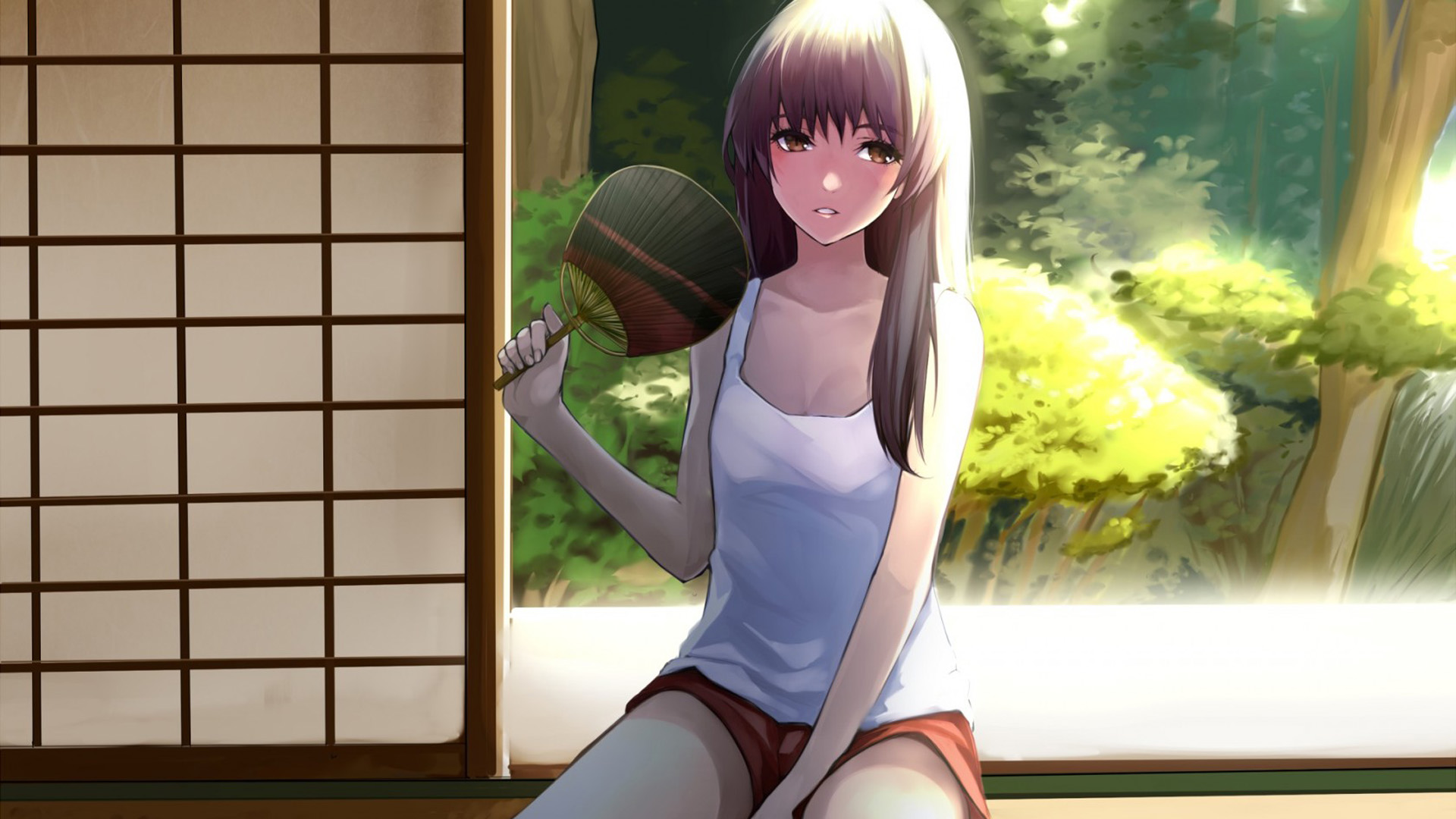 海边吹风可爱动漫女生免费电脑壁纸下载