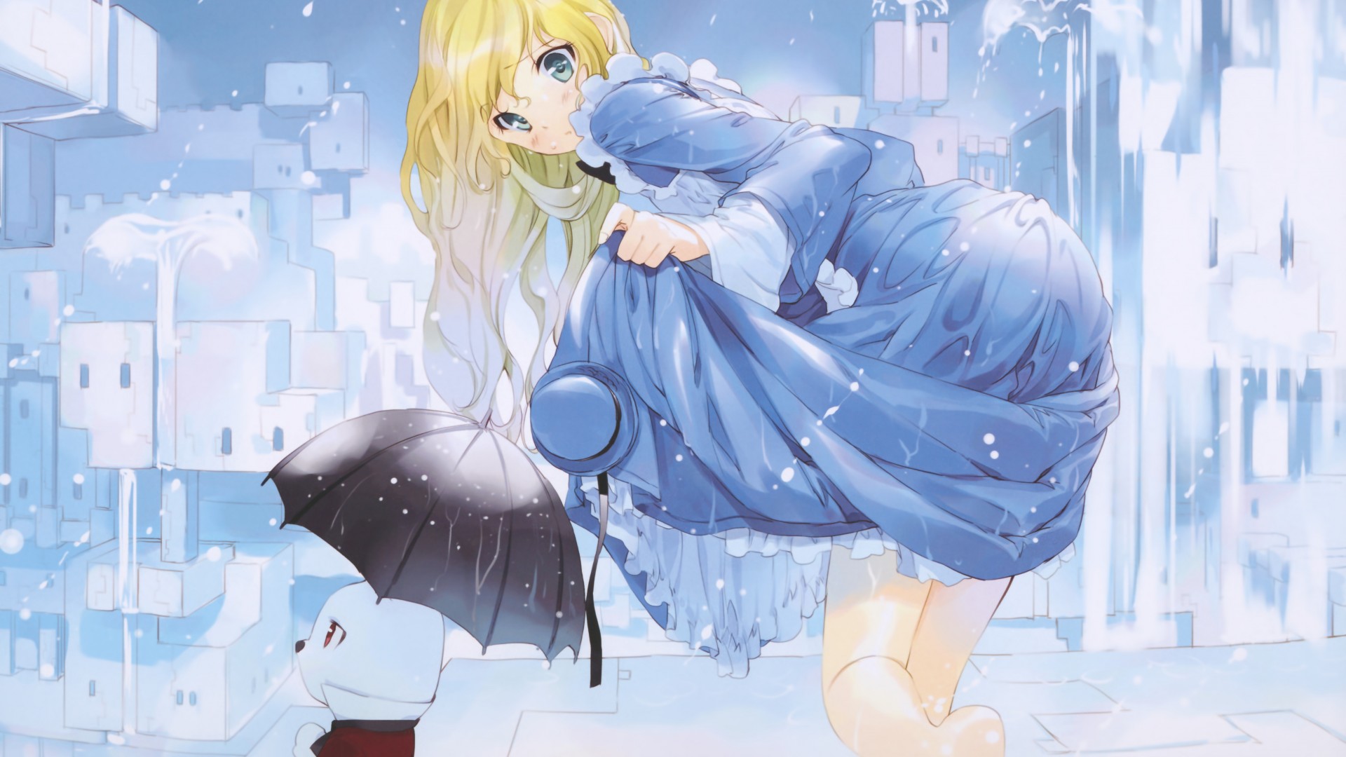 城市雨天撑雨伞女孩精美动漫壁纸免费下载