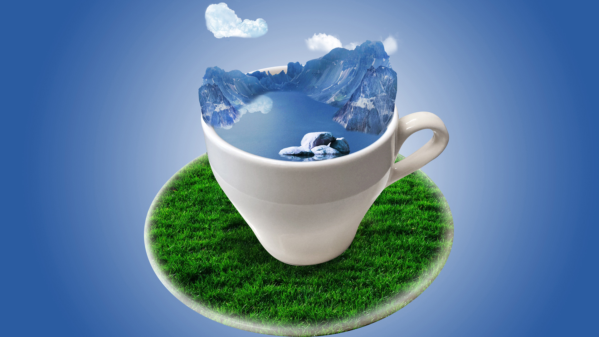 茶杯里的雪山风景桌面壁纸 免费电脑壁纸下载