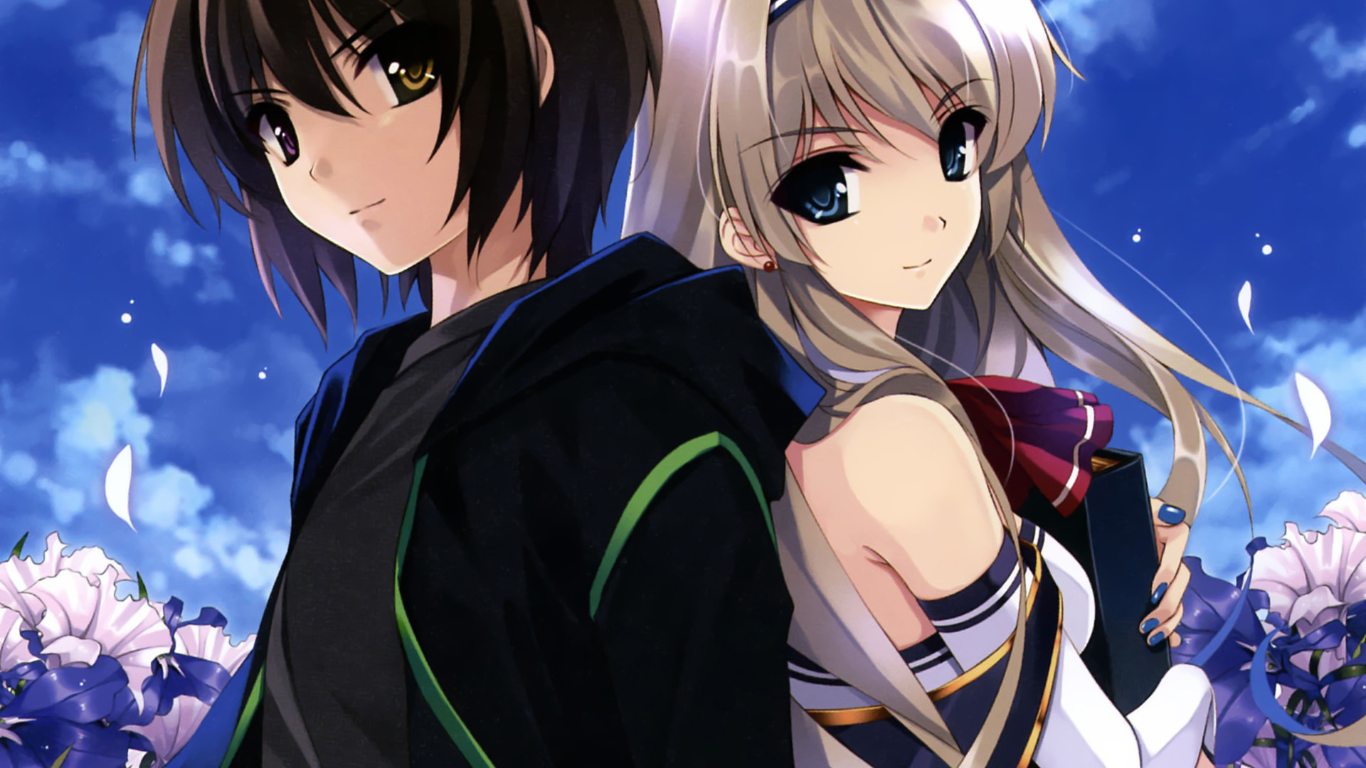 夜晚星空下美少女与帅哥charlotte夏洛特动漫免费电脑壁纸下载