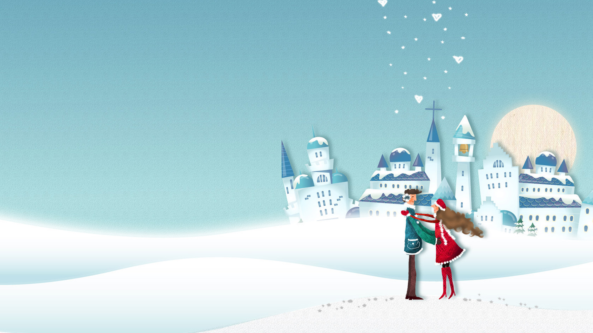 新年可爱雪人配粉色装备桌面壁纸 免费电脑壁纸下载