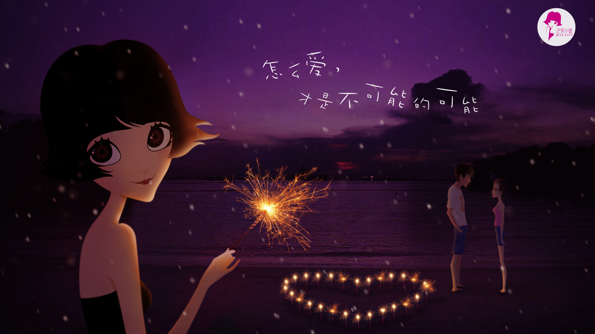 黑夜爱情主题可爱免费电脑壁纸下载