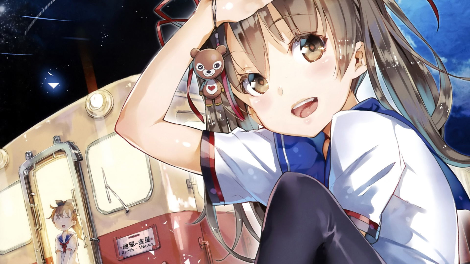 女生绑辫子车旁唯美动漫插画免费电脑壁纸下载