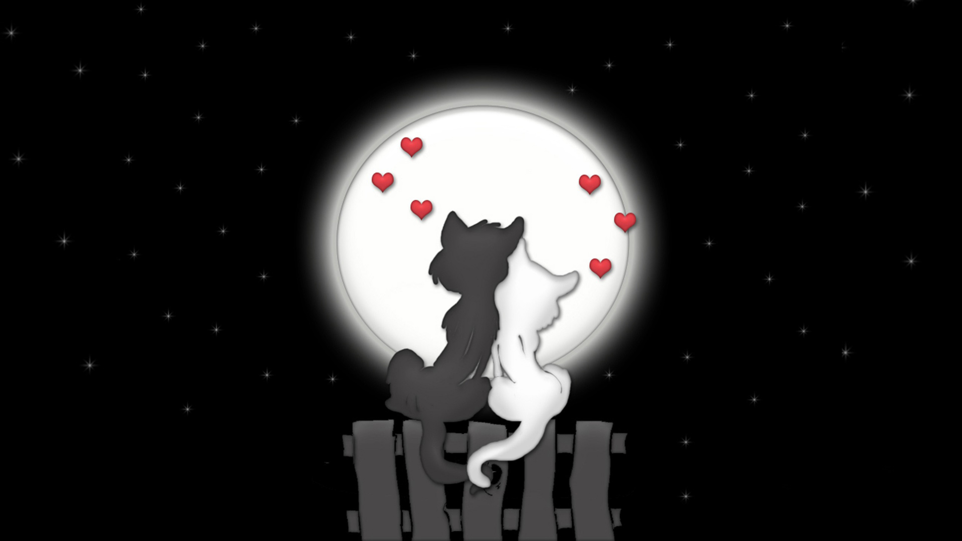可爱恋爱风猫与月亮星星夜晚电脑桌面壁纸免费下载