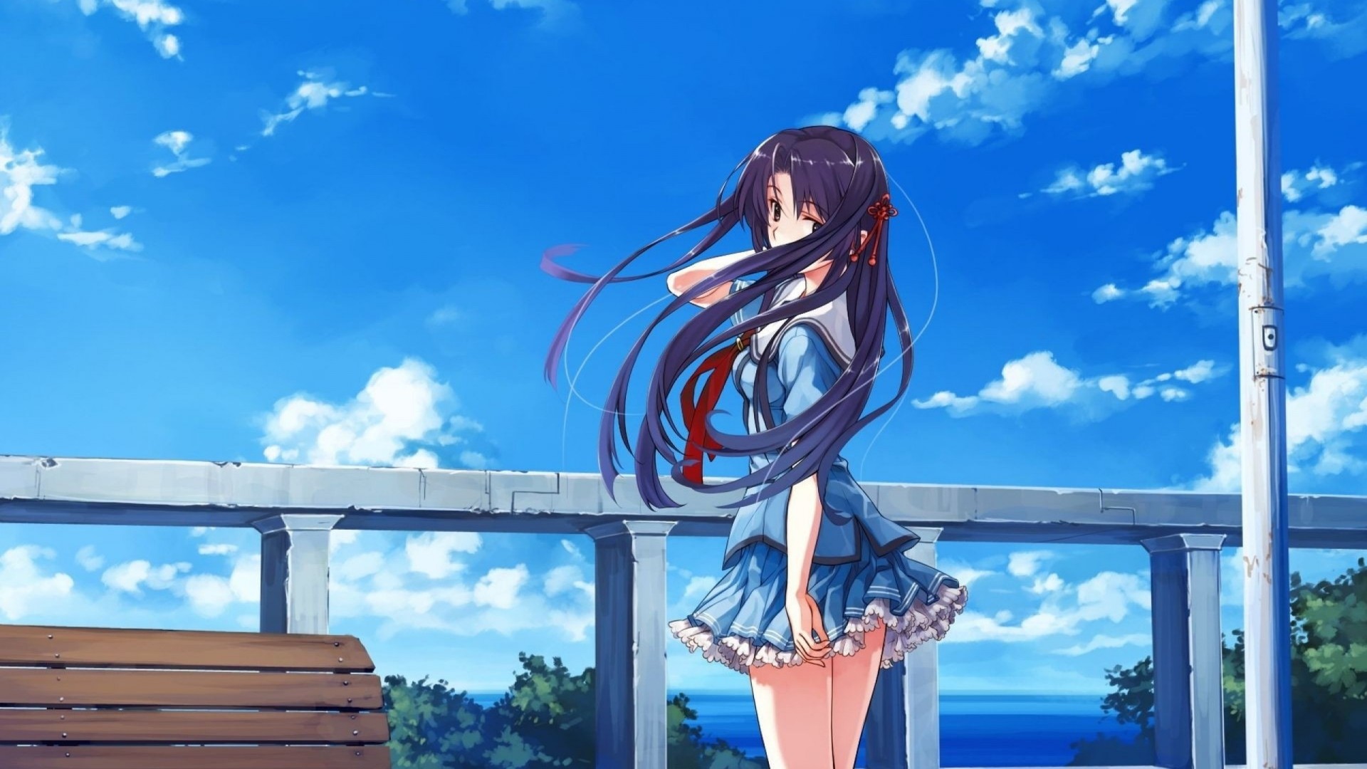 女孩归来面对废墟教室课桌动漫桌面壁纸免费下载