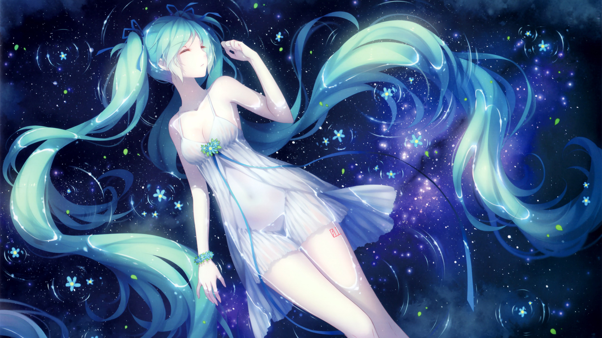 公主殿下初音未来水中蓝色系唯美高清动漫电脑壁纸免费下载