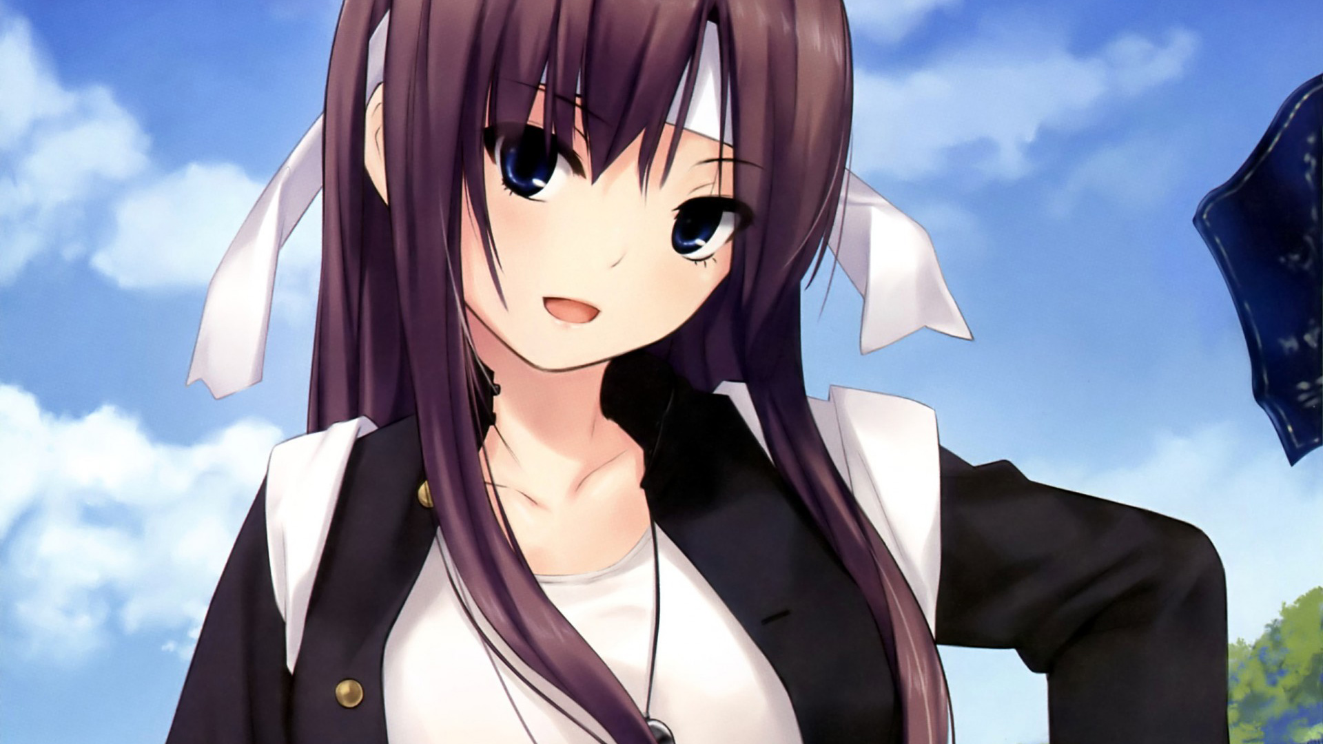 唯美动漫女生壁纸,女孩水边校服配蝴蝶结 免费电脑壁纸下载
