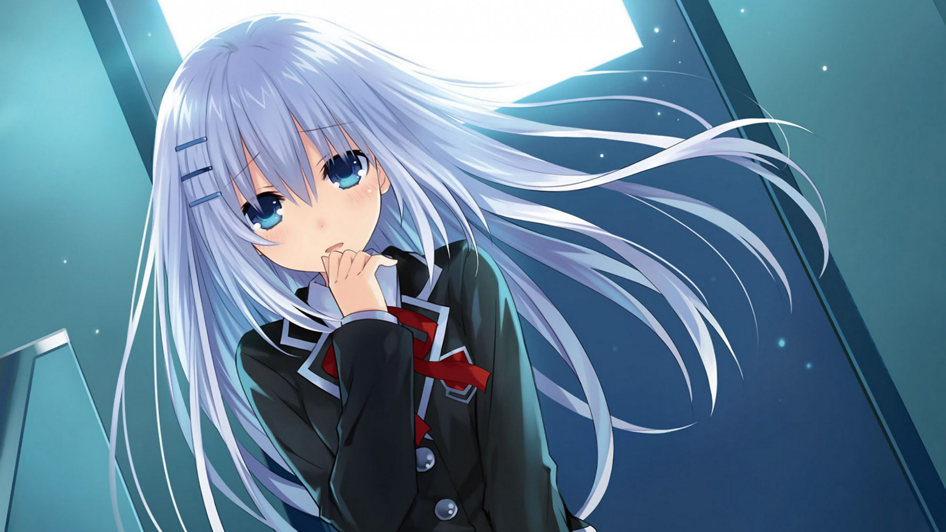 报纸女孩白色长发漂亮动漫美女免费电脑壁纸下载