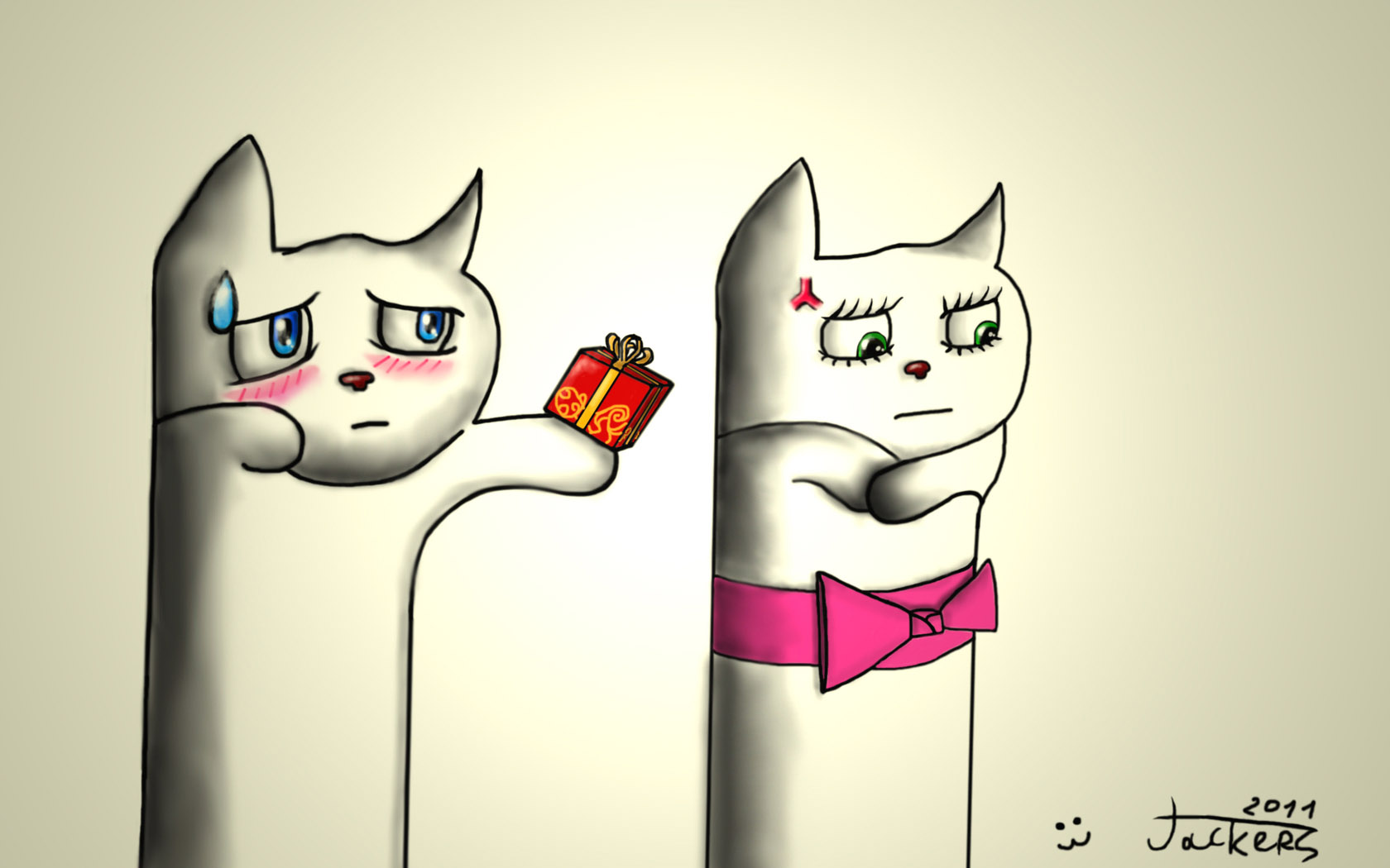 可爱纸盒人与花瓣情侣桌面免费电脑壁纸下载