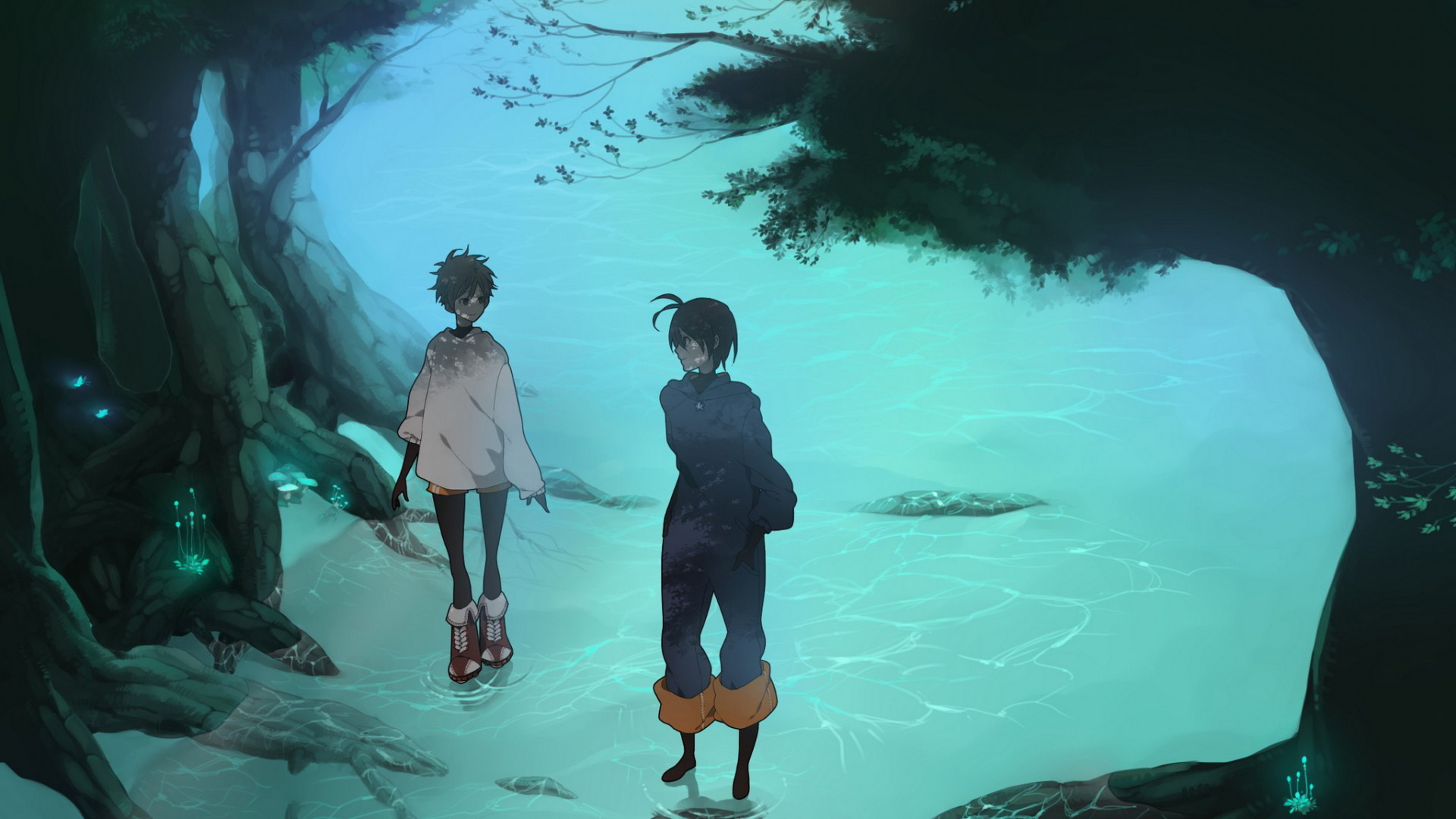 东方女孩动漫美少女尾巴主题蓝色天空免费电脑壁纸下载