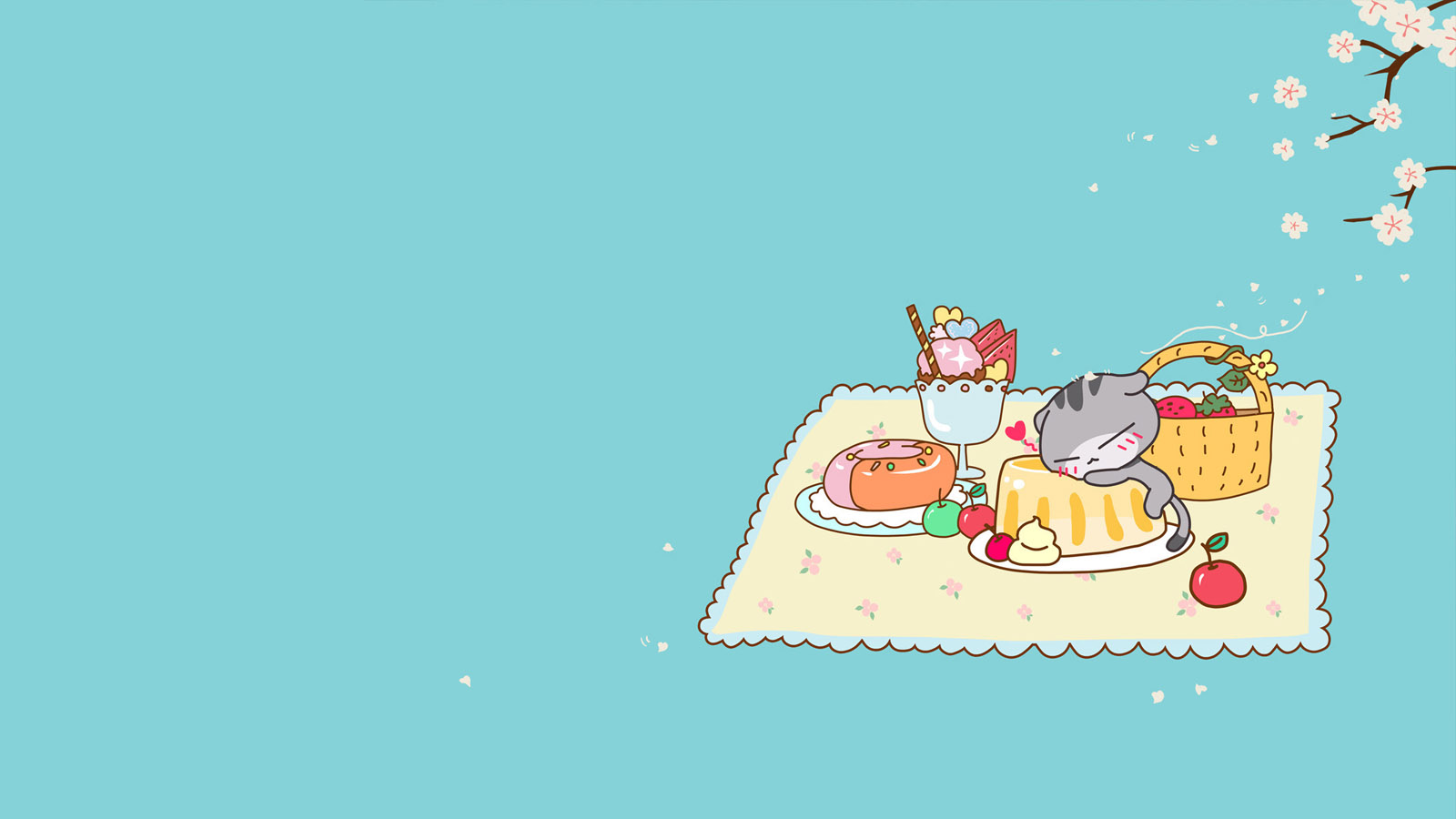 阿U清明节踏青出游野餐开心场景 晴朗草地可爱免费电脑壁纸下载