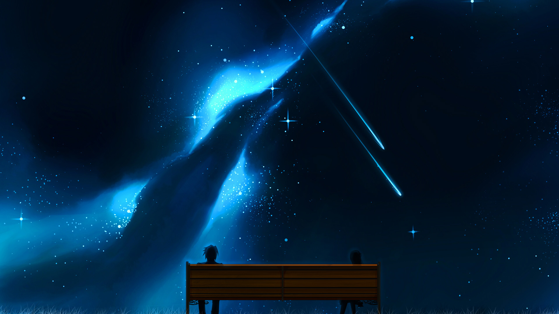 可爱小女孩与萌猫夜晚动漫壁纸 免费电脑壁纸下载