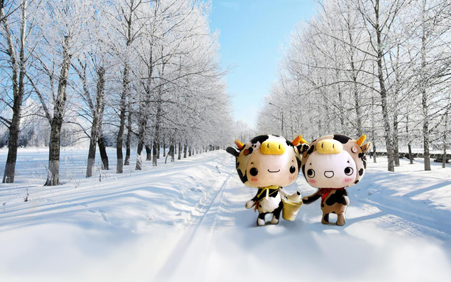 可爱雪人戴帽与树主题可爱免费电脑桌面壁纸下载