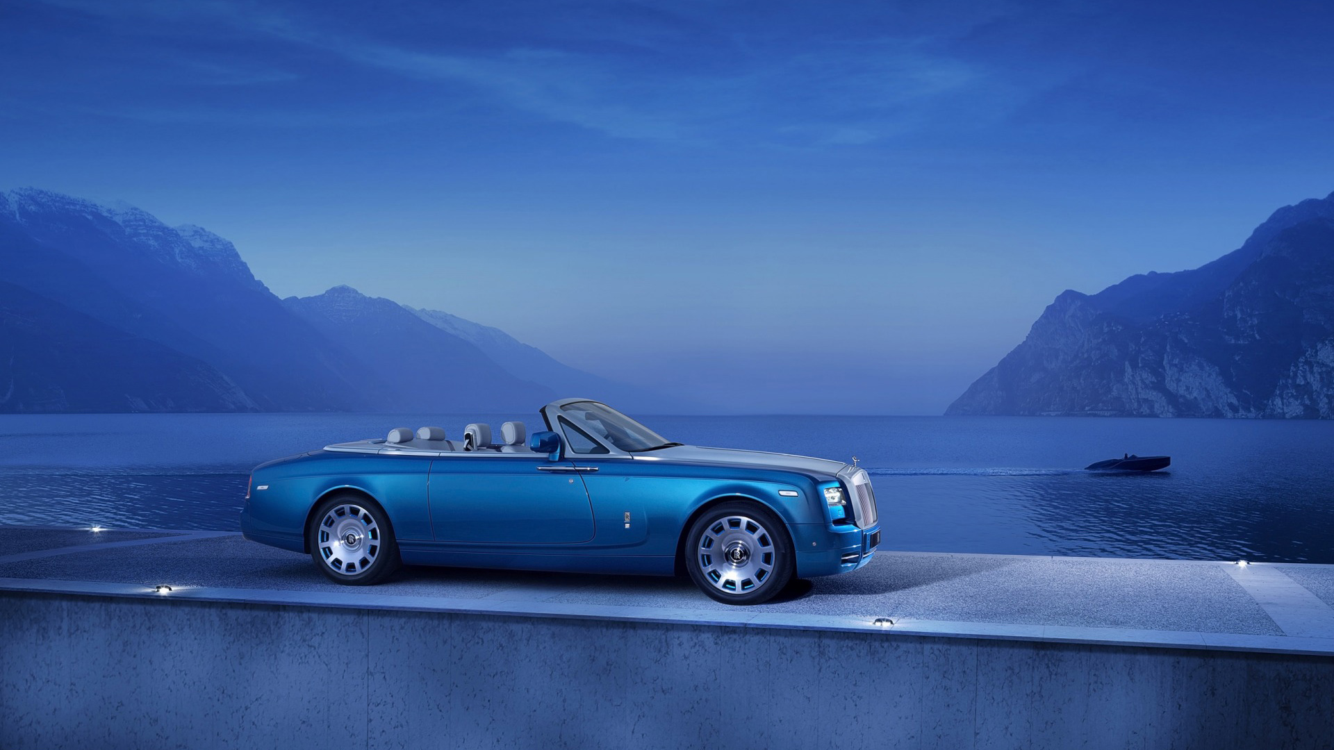 布加迪威龙蓝白色海边风光汽车免费电脑桌面壁纸下载
