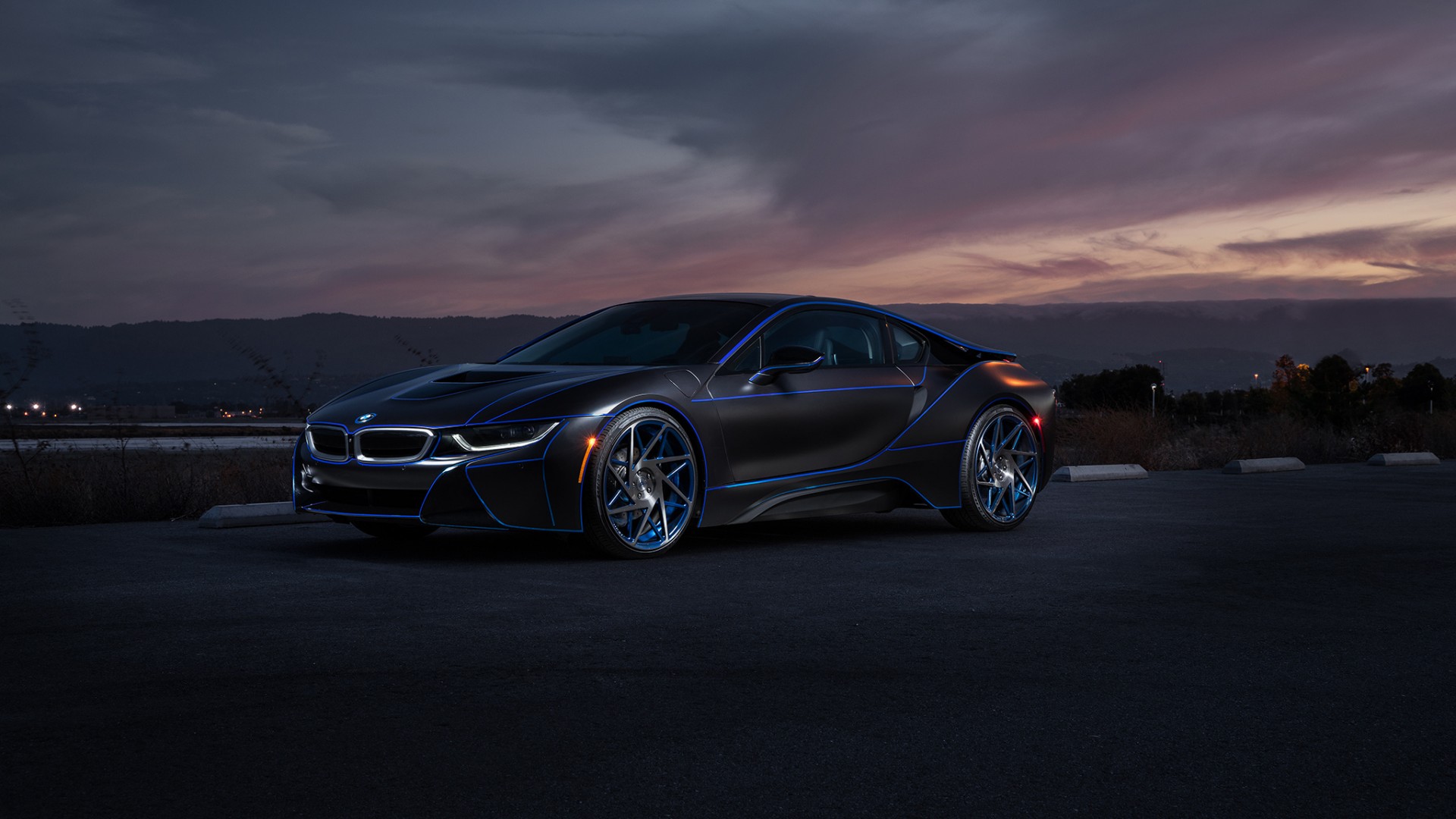 宝马i8磨砂黑色水主题汽车免费电脑壁纸下载