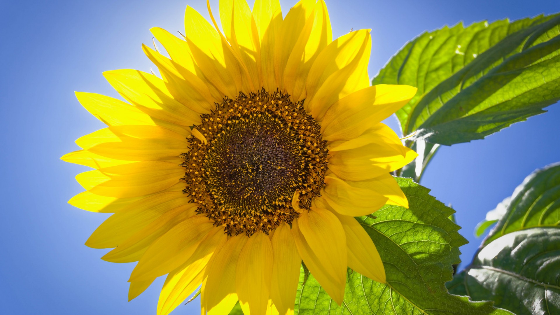 向日葵花卉桌面壁纸免费下载,花瓣叶子与天空的唯美画面