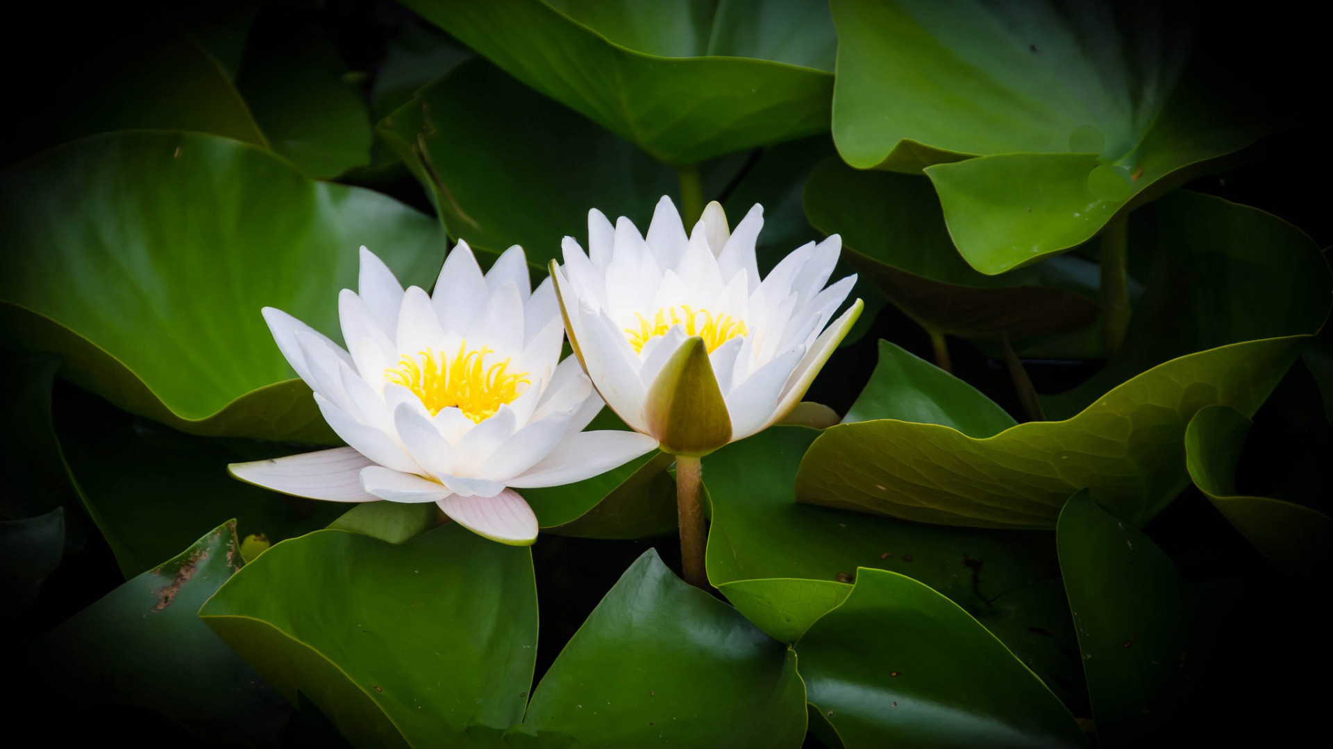 水叶子映衬下绽放的睡莲桌面花卉免费电脑壁纸下载