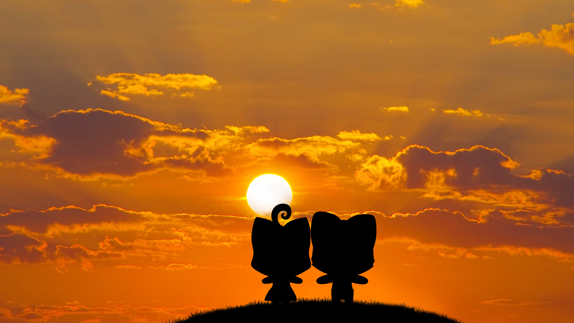 动漫高清壁纸,女孩日出云下蓝色田野免费电脑壁纸下载