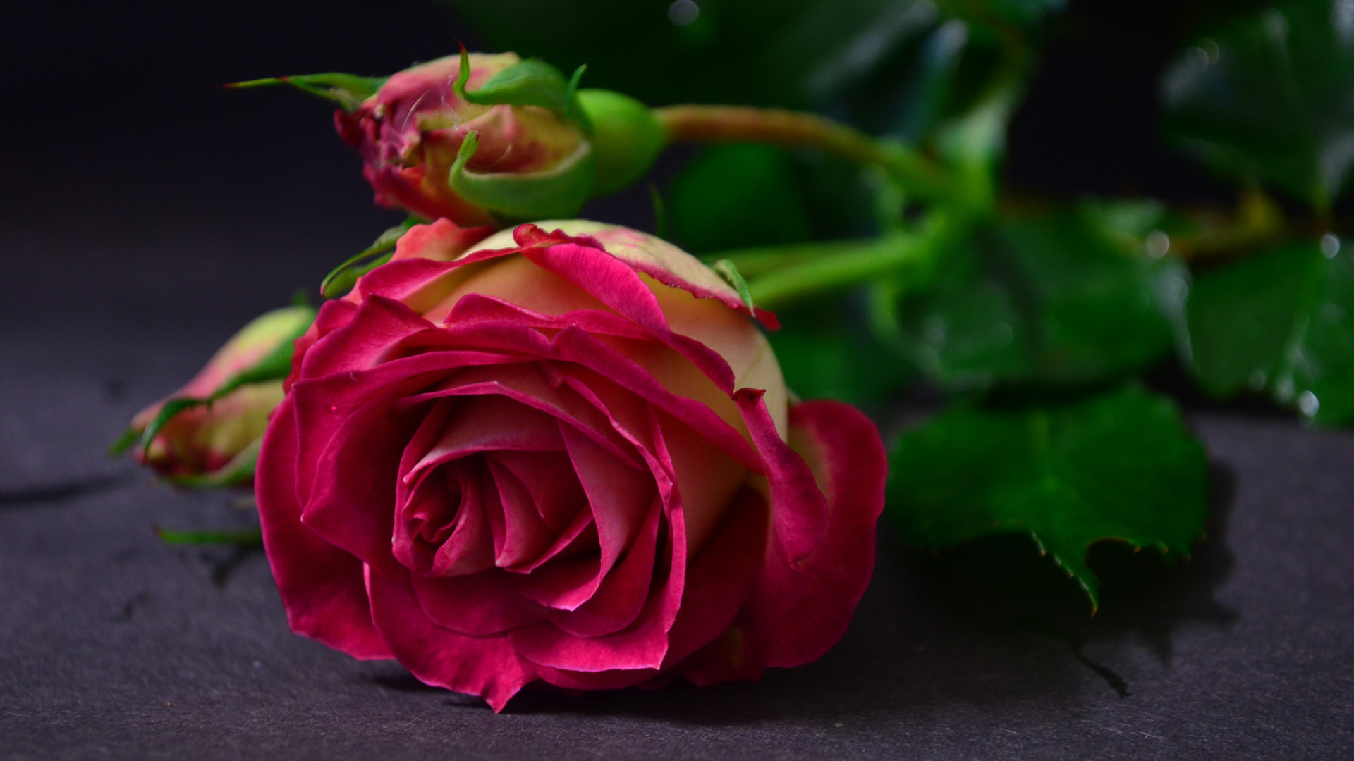 玫瑰花瓣叶子露珠花卉免费电脑壁纸高清下载