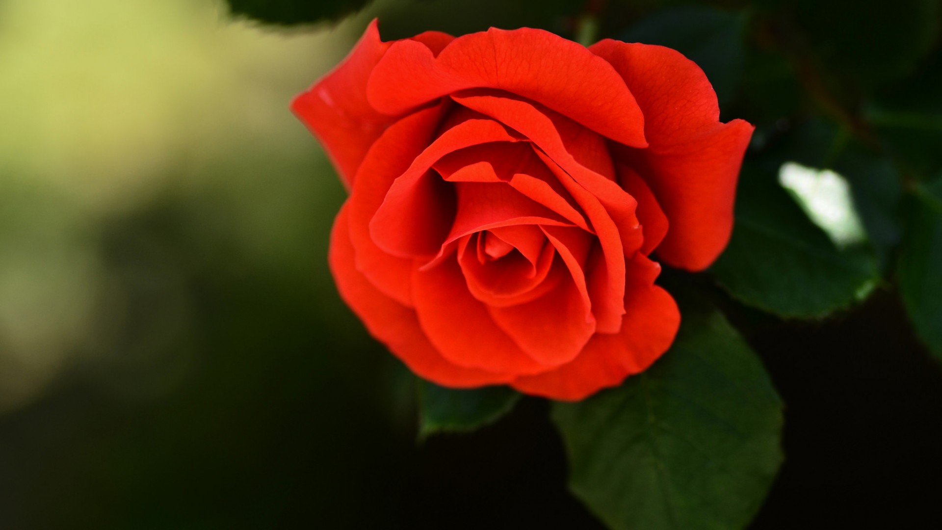 鲜红色玫瑰花配绿叶桌面花卉免费电脑壁纸下载