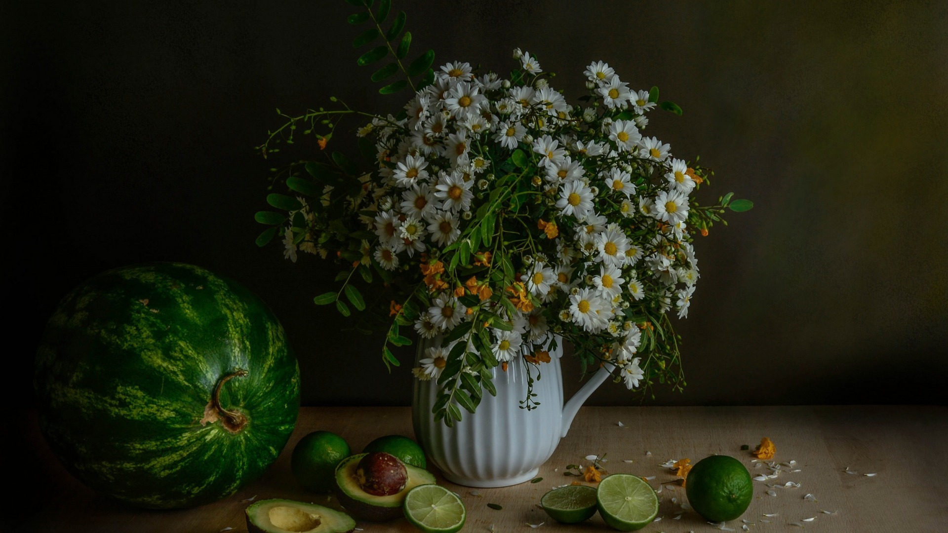 小清新小雏菊手绘花卉花瓶原创免费电脑壁纸下载