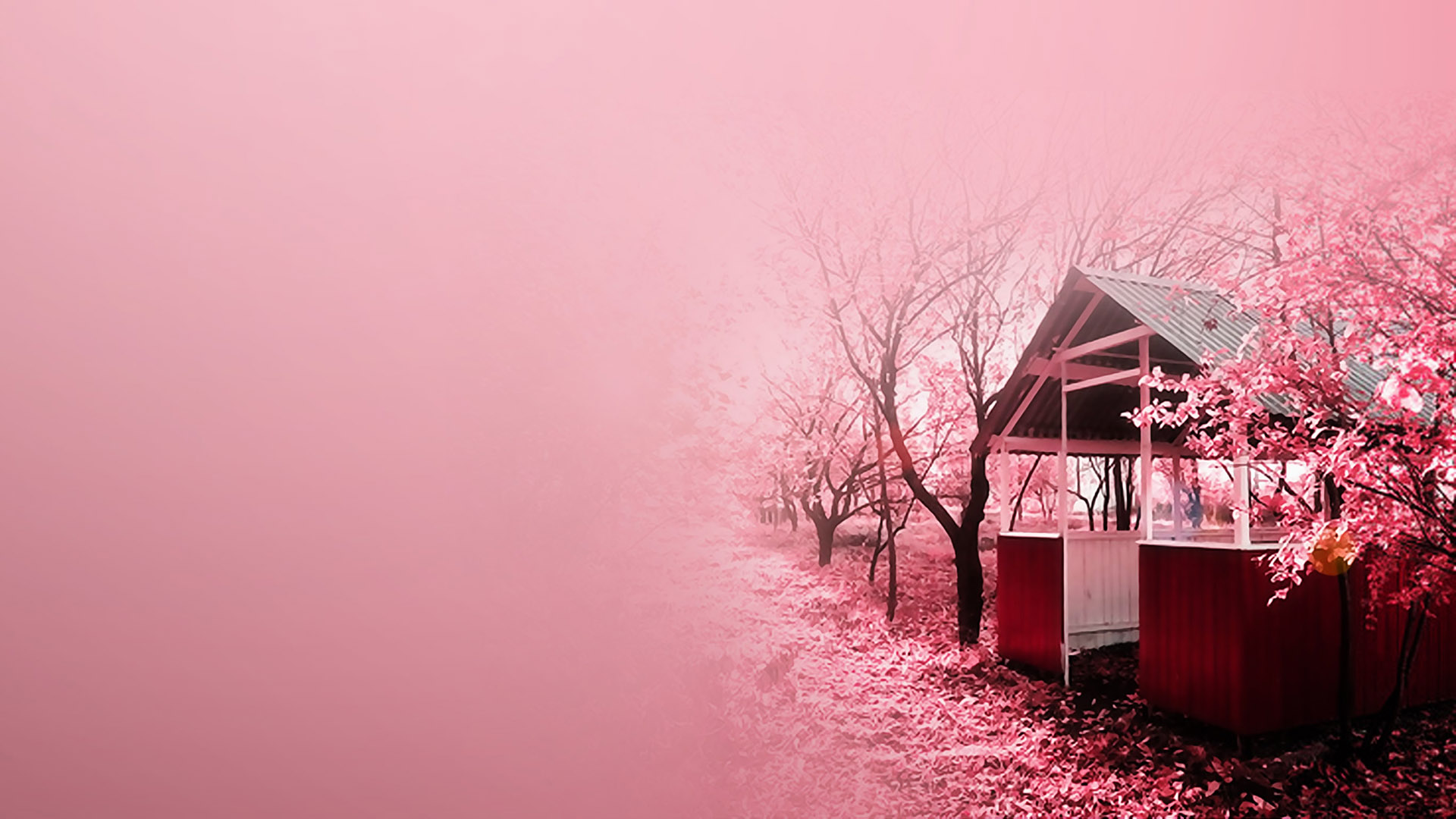 浪漫温馨居家花卉壁纸,店内鲜花花瓶与粉色墙桌面免费下载