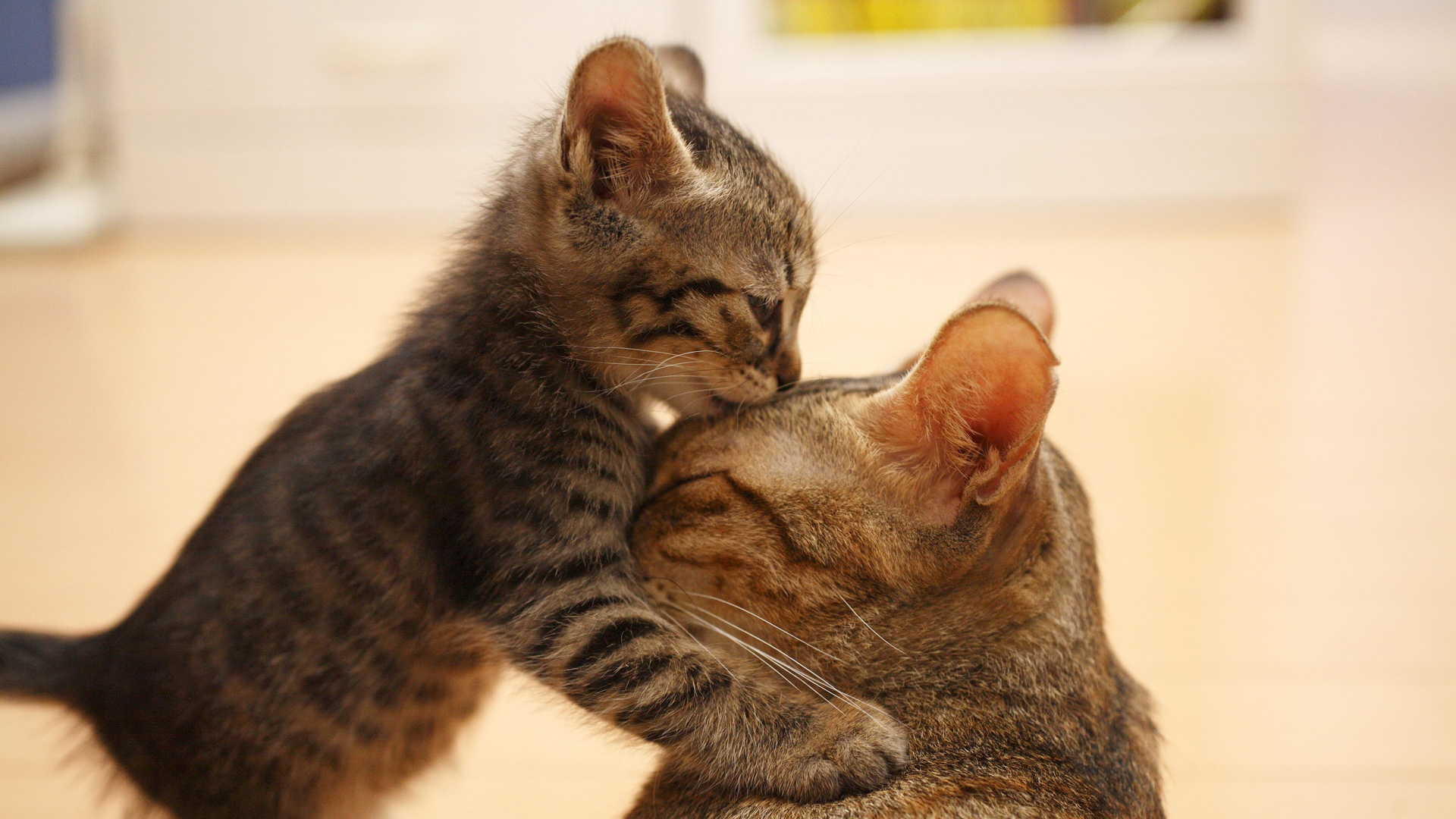 可爱猫猫伸腿好奇玩耍的泡泡主题动物免费电脑壁纸下载