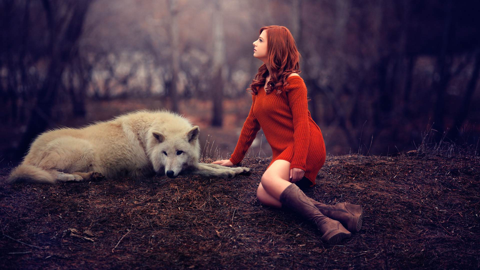 秋天手绘精美狗狗动物免费电脑壁纸下载