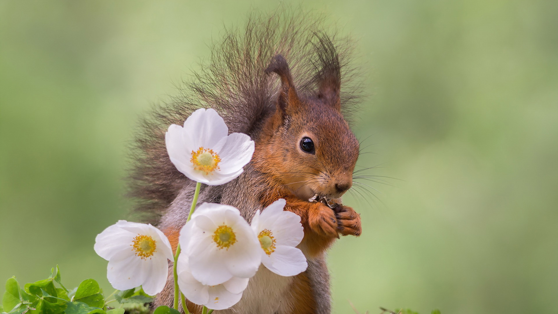 白鼬伶鼬与苔藓主题可爱动物免费电脑桌面壁纸下载