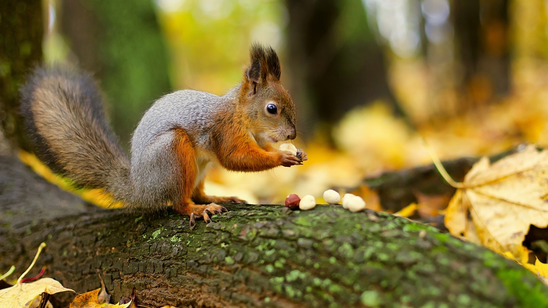 可爱小松鼠与树旁房子栅栏围栏桌面壁纸免费下载