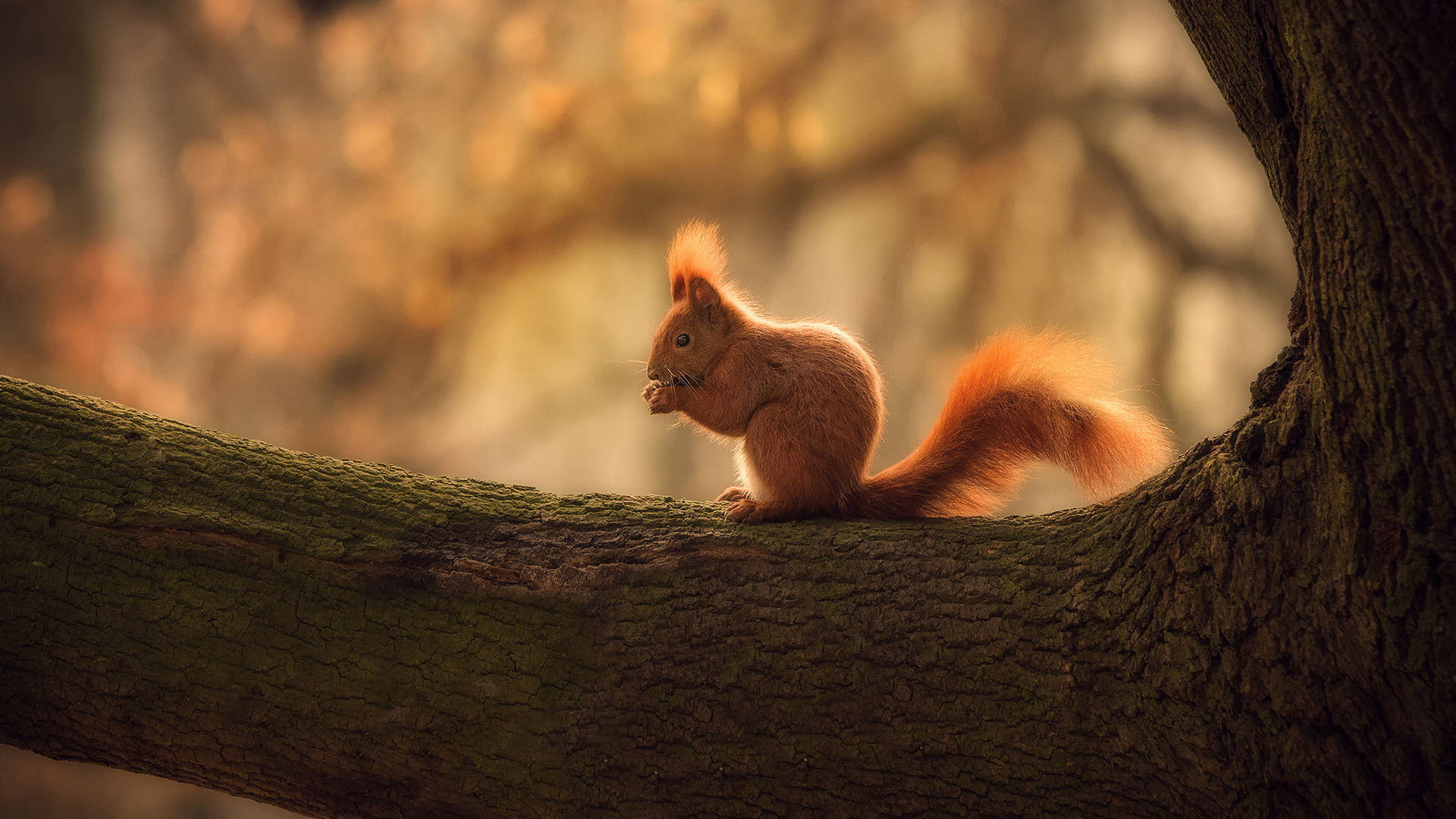 可爱小松鼠在自然森林树枝间 免费动物电脑壁纸下载