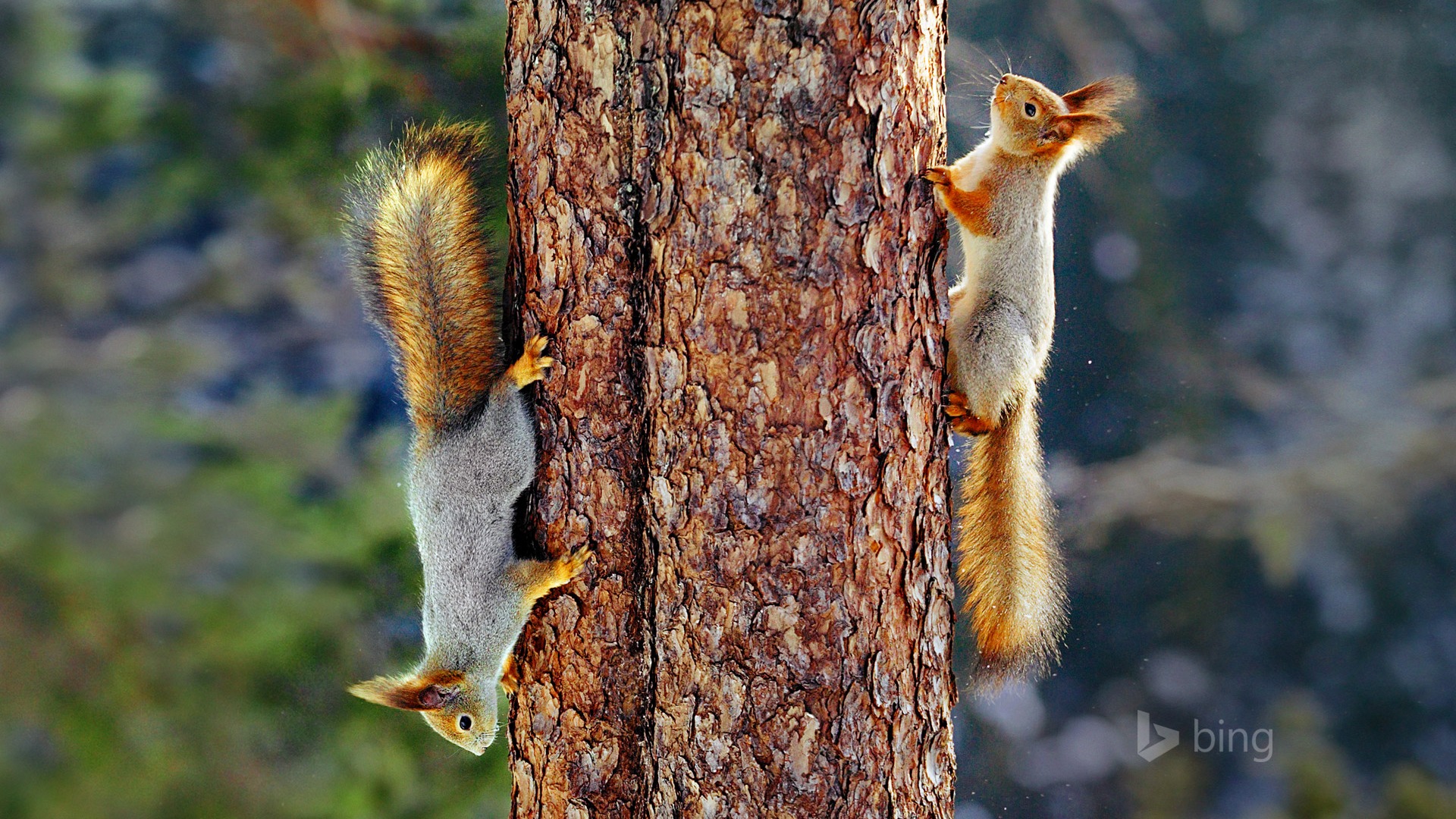可爱松鼠与松树主题动物免费电脑桌面壁纸下载