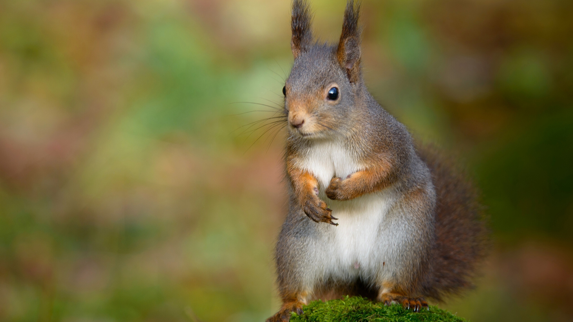 可爱小松鼠在自然树林吃草莓野果的免费电脑壁纸下载