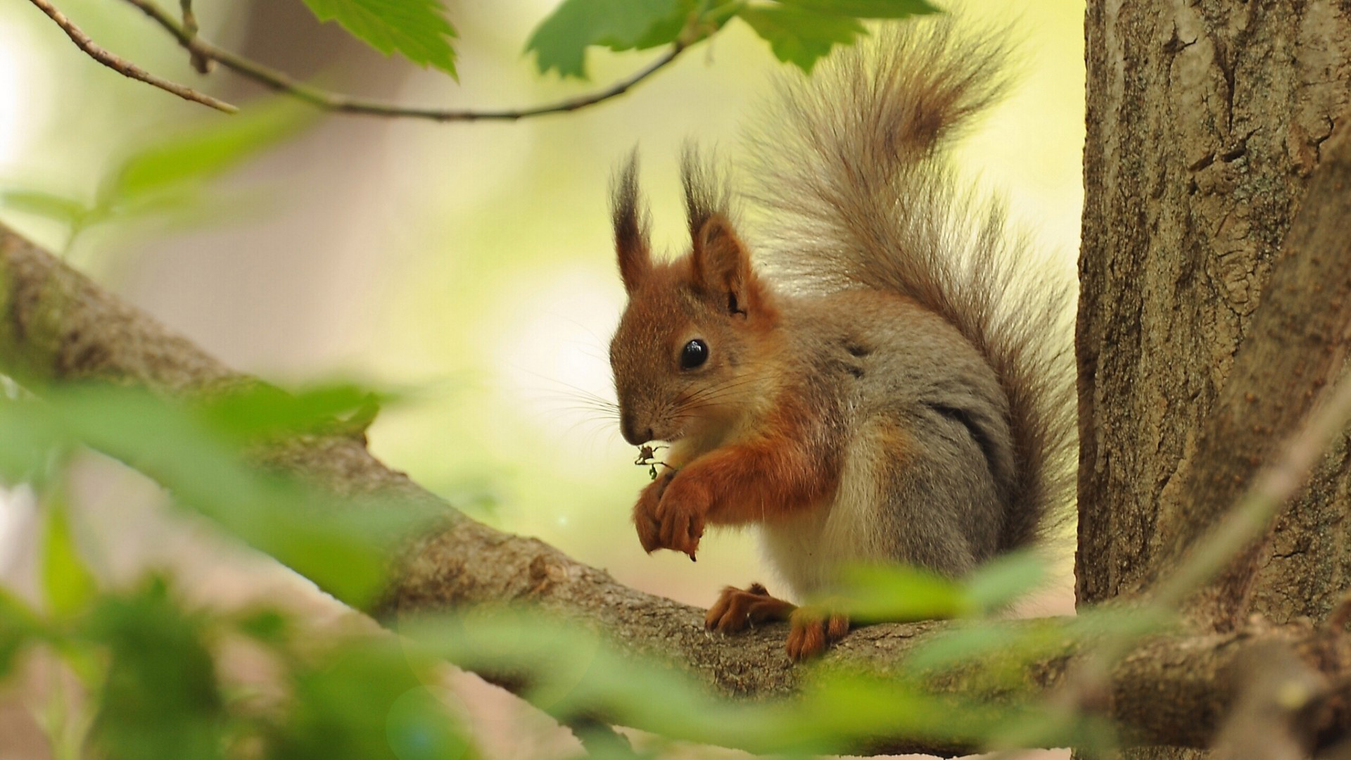 自然森林树桩与可爱松鼠植物主题免费动物电脑壁纸下载