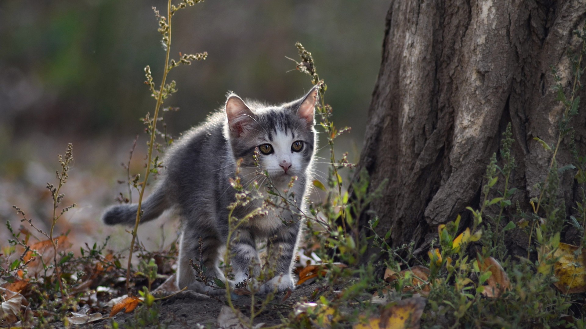 灰色小猫凝望桌面壁纸 可爱眼睛胡须动物免费电脑壁纸下载