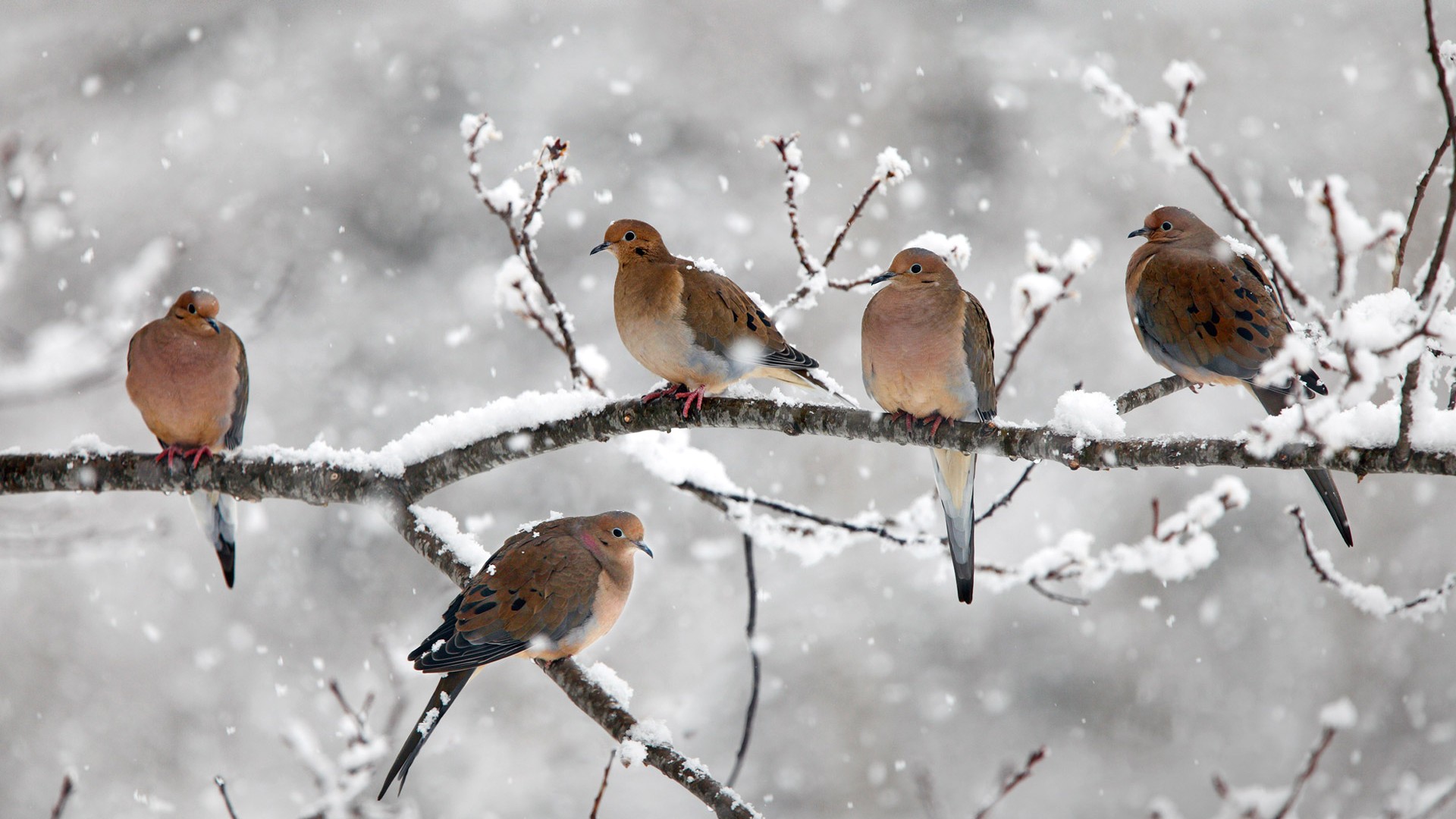 可爱两只鸟儿交谈树枝树叶场景动物免费电脑壁纸下载