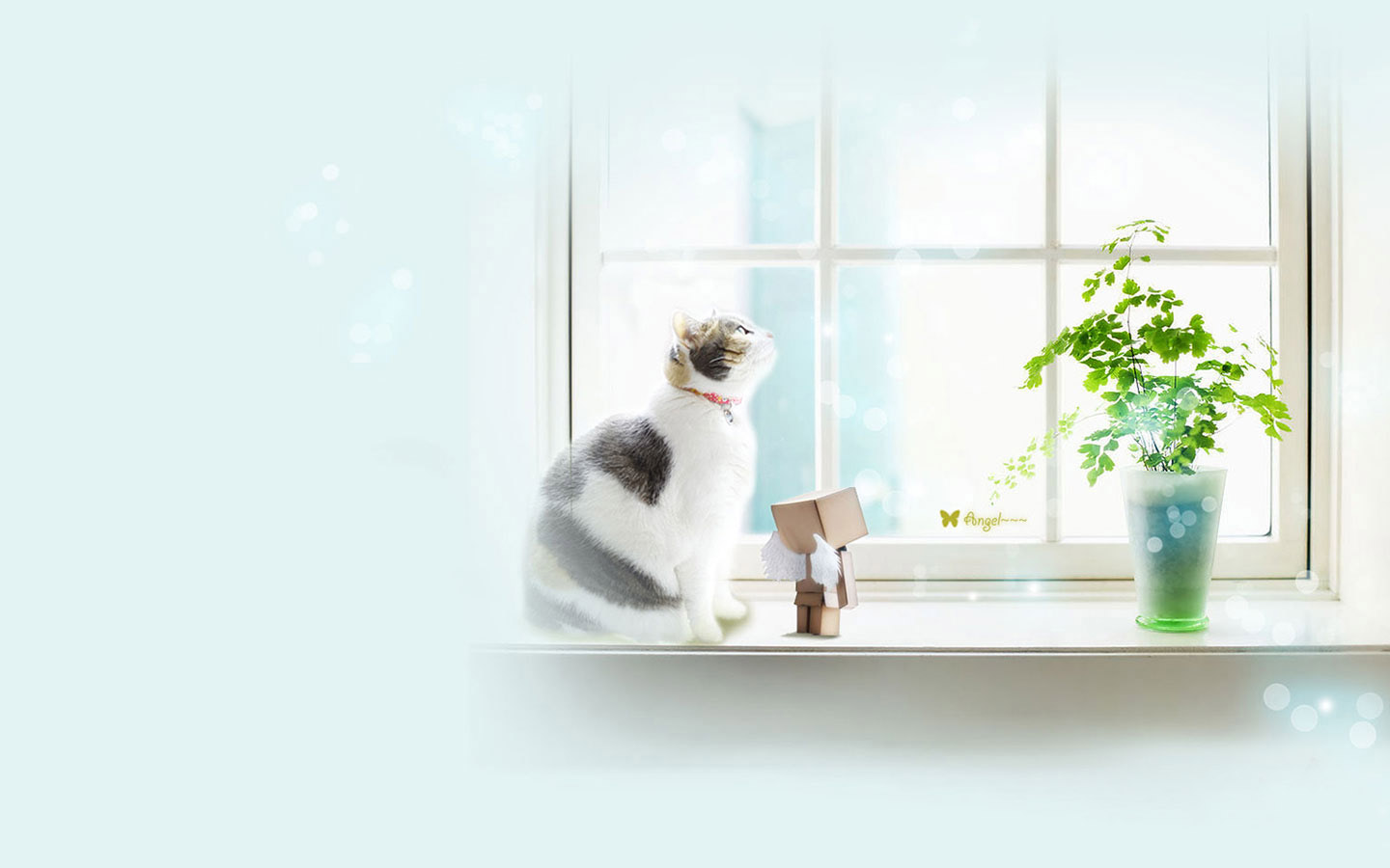 可爱小女孩与猫咪动物免费电脑桌面壁纸下载