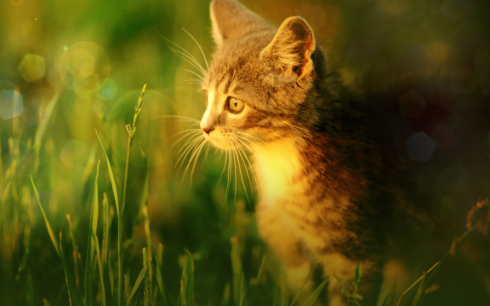 可爱小猫咪壁纸免费下载 适合孩子情侣双胞胎的绿色草地动物电脑壁纸