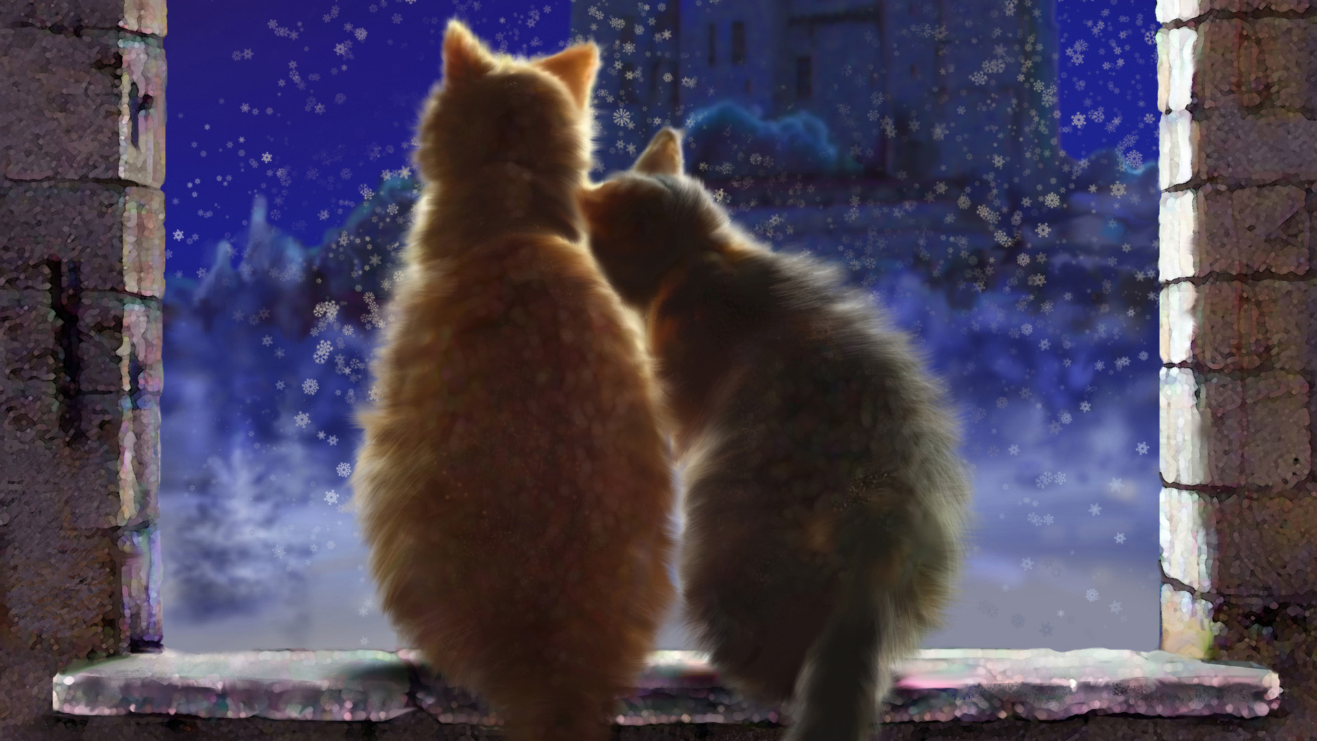 圣诞节平安夜可爱小猫动物免费电脑壁纸下载