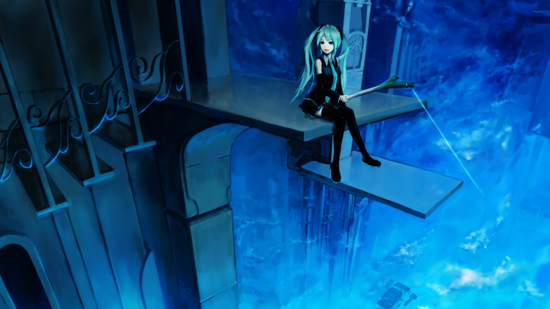 城市夜晚星空初音未来动漫免费电脑壁纸下载